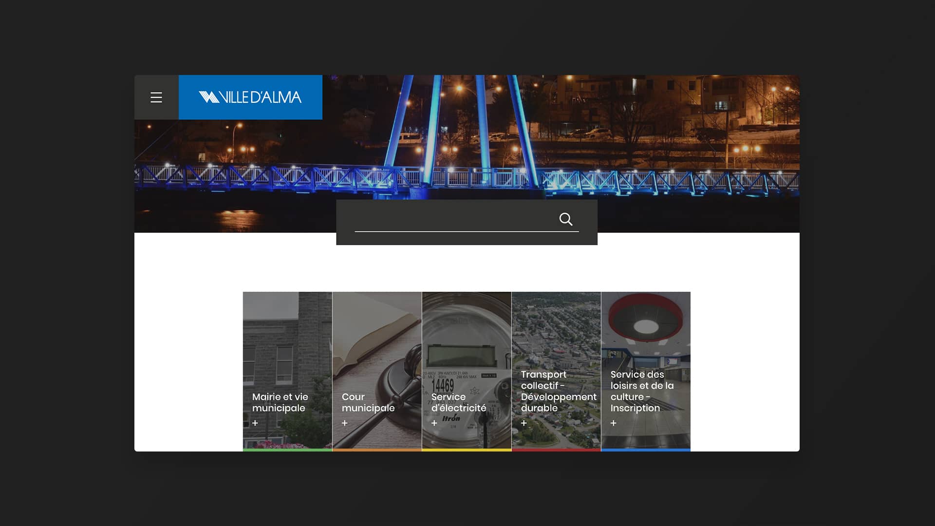 La Ville d’Alma désirant se pourvoir d’un outil virtuel pouvant permettre aux citoyens d’effectuer des recherches rapides et facilitantes pour trouver les informations et renseignements dont ils ont besoin en un tour de main, le mandat de notre agence fut de développer ce site vitrine informationnel il y a de cela quelques années déjà.